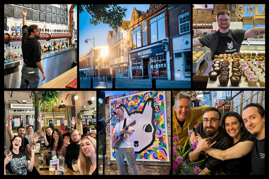 The bar offers 20 taps of Mad Squirrel and guest beers, plus a range of premium wines, ciders, spirits and soft drinks. Cans are kept in our walk-in chill box keeping them cold, ready for drinking and taking away.