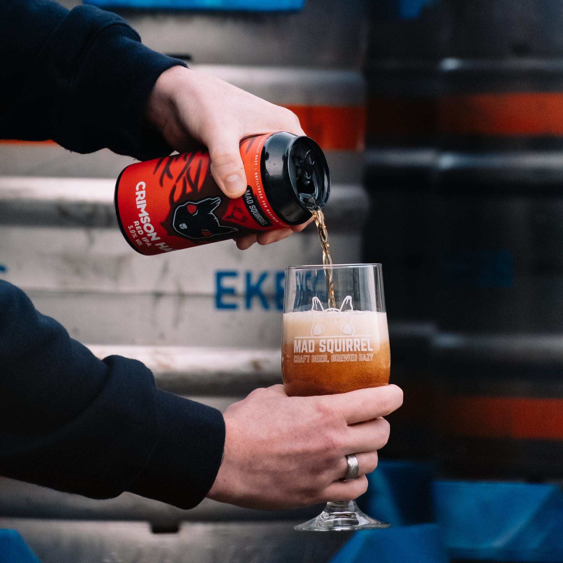 To celebrate Mad Squirrel’s return to Hertford, we teamed up with Hertford Brew Club to create Crimson Hart. This bold Red IPA showcases resinous pine bitterness layered with vibrant tropical fruit and bright citrus, all balanced by a rich ruby malt backbone for a delicious, modern hop-forward pint.